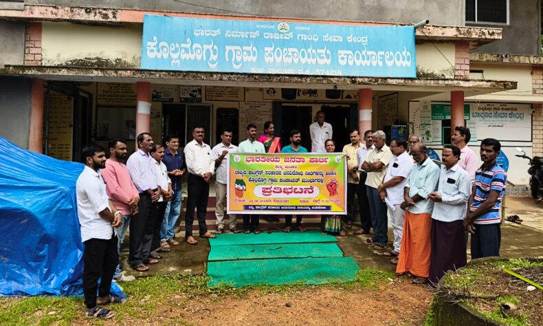 ಕೊಲ್ಲಮೊಗ್ರು ಗ್ರಾ.ಪಂ ಕಛೇರಿ ಎದುರು ಬಿಜೆಪಿ ಕಾರ್ಯಕರ್ತರಿಂದ ಪ್ರತಿಭಟನೆ
