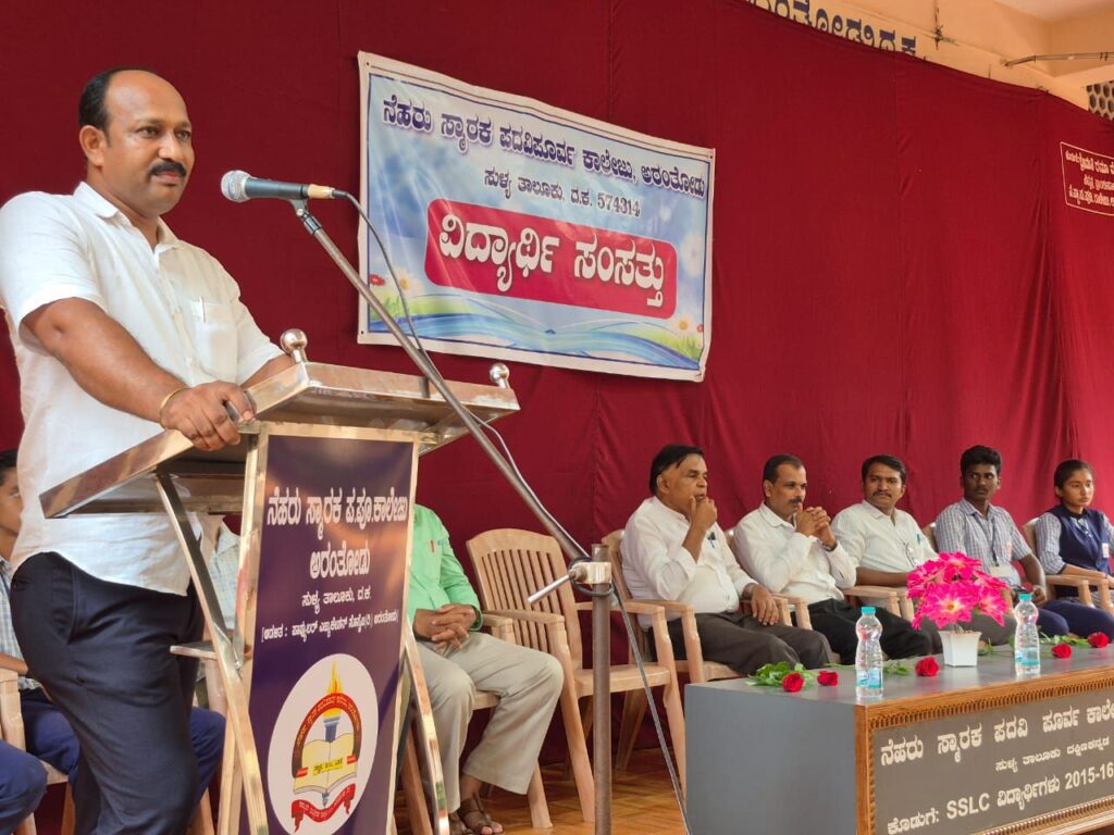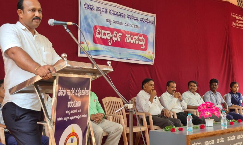 ನೆಹರು ಸ್ಮಾರಕ ಪದವಿ ಪೂರ್ವ ಕಾಲೇಜು ಅರಂತೋಡು ಇಲ್ಲಿ ನೆಡೆದ 2025-26ನೇ ಸಾಲಿನ ನೂತನ ವಿದ್ಯಾರ್ಥಿ ಸರಕಾರದ ಪದಗ್ರಹಣ ಕಾರ್ಯಕ್ರಮವನ್ನು ಕಾಲೇಜಿನ ಸಂಚಾಲಕರಾದ ಕೆ ಆರ್ ಗಂಗಾಧರ ದೀಪಪ್ರಜ್ವಲನ ಮಾಡುವುದರ ಮೂಲಕ ಉದ್ಘಾಟಿಸಿದರು ಮತ್ತು ವಿದ್ಯಾರ್ಥಿ ಸರಕಾರದ ಸಚಿವರುಗಳಿಗೆ ಪ್ರಮಾಣ ವಚನ ಬೋಧಿಸಿದರು