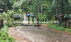ಕಂದಡ್ಕ ಮರಸಂಕ ಸೇತುವೆಯ ಬಳಿ ವಿದ್ಯುತ್ ಲೈನ್ ಮೇಲೆ ಮರ ಬಿದ್ದು ಮುಖ್ಯ ರಸ್ತೆ ಬಂದ್ ಆಗಿದೆ. ವಿದ್ಯುತ್ ತಂತಿ ಹಾಗೂ ಕಂಬಕ್ಕೆ ಹಾನಿಯಾಗಿದ್ದು ವಾಹನ ಸಂಚಾರಕ್ಕೆ ಅಡಚಣೆ ಉಂಟಾಗಿದೆ.
