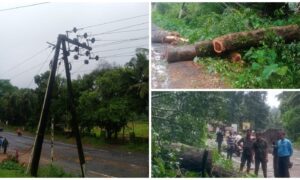 ಸುಬ್ರಹ್ಮಣ್ಯ ಸಮೀಪ 33 ಕೆವಿ. ಹಾಗೂ 11 ಕೆವಿ ವಿದ್ಯುತ್ ಲೈನ್ ಮೇಲೆ ಮರವೊಂದು ಬಿದ್ದು ಕಂಬಗಳಿಗೆ ಹಾನಿಯಾದ ಘಟನೆ ಇಂದು ನಡೆದಿದೆ. ಸ್ಥಳಕ್ಕೆ ಮೆಸ್ಕಾಂ ಎಇ ಚಿದಾನಂದ ಹಾಗೂ ಸಿಬ್ಬಂದಿಗಳು ಆಗಮಿಸಿ ದುರಸ್ತಿ ಕಾರ್ಯ ಆರಂಭಿಸಿದ್ದಾರೆ.