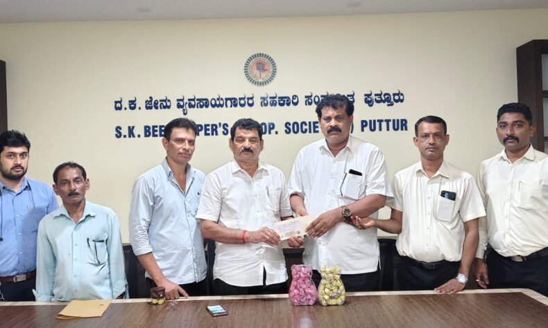 ಡಿಸಿಸಿ ಬ್ಯಾಂಕ್ ವತಿಯಿಂದ ದ.ಕ. ಜೇನು ವ್ಯವಸಾಯಗಾರರ ಸಹಕಾರಿ ಸಂಘಕ್ಕೆ ರೂ. 5 ಲಕ್ಷ ಹಸ್ತಾಂತರ