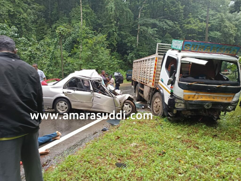 ಮಾಣಿ-ಮೈಸೂರು ರಾಜ್ಯ ಹೆದ್ದಾರಿಯ ದೇವರಕೊಲ್ಲಿ ಎಂಬಲ್ಲಿ ಕಾರು ಮತ್ತು ಲಾರಿ ನಡುವೆ ಭೀಕರ ಅಪಘಾತ ಸಂಭವಿಸಿದ್ದು, ಕಾರಿನಲ್ಲಿದ್ದ ನಾಲ್ವರೂ ಮೃತಪಟ್ಟಿದ್ದಾರೆ ಎಂದು ತಿಳಿದುಬಂದಿದ್ದು, ಮೃತರು ಗೋಣಿಕೊಪ್ಪ ಮೂಲದವರು ಎಂದು ತಿಳಿದುಬಂದಿದೆ.