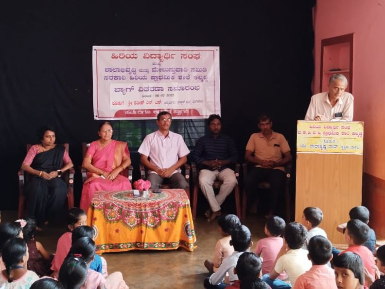 ಸಭಾ ಕಾರ್ಯಕ್ರಮದ ಅಧ್ಯಕ್ಷತೆಯನ್ನು ಹಿರಿಯ ವಿದ್ಯಾರ್ಥಿ ಸಂಘದ ಅಧ್ಯಕ್ಷರಾದ ಸಾಯಿನಾರಾಯಣ ಕೆ ವಹಿಸಿದ್ದರು. ಹಿ.ವಿ.‌ಸಂಘದ ನಿರ್ದೇಶಕರಾದ ಸುಬ್ರಾಯ ಓಣ್ಯಡ್ಕ ಪ್ರಾಸ್ತಾವಿಕವಾಗಿ ಮಾತನಾಡಿ ಬ್ಯಾಗ್ ಗಳನ್ನು ಕೊಡುಗೆಯಾಗಿ ಉದ್ಯಮಿ ಸತೀಶ್ ಎನ್ ಎಸ್ ರವರ ಪರಿಚಯವನ್ನು ಸಭೆಗೆ ನೀಡಿದರು. ಮುಖ್ಯ ಅತಿಥಿಗಳಾದ ನಿವೃತ್ತ ಮುಖ್ಯ ಶಿಕ್ಷಕಿ ಕಮಲಾ ಜೆ ನಡ್ಕ ಇವರು ಮಕ್ಕಳಿಗೆ ಬ್ಯಾಗ್ ಗಳನ್ನು ವಿತರಿಸಿ ಸಭೆಯನ್ನು ಉದ್ದೇಶಿಸಿ ಮಾತನಾಡಿ ಬ್ಯಾಗ್ ಗಳನ್ನು ಕೊಡುಗೆಯನ್ನಾಗಿ ನೀಡಿದ ಉದ್ಯಮಿಗಳು ಶಾಲಾ ಮಕ್ಕಳ ಮೇಲಿನ ಪ್ರೀತಿಯಿಂದ ಕೊಡುಗೆ ನೀಡಿದ್ದನ್ನು ಕೃತಜ್ಞತಾಪೂರ್ವಕ ನೆನಪಿಸಿಕೊಂಡರು. ಆಂಗ್ಲ ಮಾಧ್ಯಮದ ಶಿಕ್ಷಣದ ಅನಿವಾರ್ಯತೆ ಇದೆ. ನಮ್ಮ ಶಾಲೆಯಲ್ಲೂ ಆಂಗ್ಲ ಮಾಧ್ಯಮದ ಶಾಖೆಯನ್ನು ಪ್ರಾರಂಭಿಸಿಬೇಕು. ಇದು ಶತಮಾನೋತ್ಸವ ಸಂಭ್ರಮಕ್ಕೆ ಬುನಾದಿಯಾಗಬೇಕು ಎಂದರು. ಹಿರಿಯ ವಿದ್ಯಾರ್ಥಿ ಸಂಘವು ಶಾಲಾ ಮಕ್ಕಳ ಶೈಕ್ಷಣಿಕ ಚಟುವಟಿಕೆಗಳಿಗೆ ನಿರಂತರ ಪ್ರೋತ್ಸಾಹ ನೀಡುತ್ತಿರುವುದನ್ನು ಶ್ಲಾಘಿಸಿದರು. ಶಾಲಾಭಿವೃದ್ಧಿ ಮತ್ತು ಮೇಲುಸ್ತುವಾರಿ ಸಮಿತಿಯ ಅಧ್ಯಕ್ಷರಾದ ರಾಮಚಂದ್ರ ಕಾಚಿಲ, ಶಾಲಾ ಮುಖ್ಯ ಶಿಕ್ಷಕಿ ಶ್ರೀಮತಿ ವಜ್ರಾಕ್ಷಿ ಎಂ., ಸಂಘದ ಉಪಾಧ್ಯಕ್ಷರಾದ ರವೀಂದ್ರ ಮಾಳಿಗೆ, ಸಂಘದ ನಿರ್ದೇಶಕರಾದ ನಂದನ್ ಎಂ.ಎಸ್. ಉಪಸ್ಥಿತರಿದ್ದರು. ಹಿರಿಯ ವಿದ್ಯಾರ್ಥಿ ಸಂಘದ ನಿರ್ದೇಶಕರಾದ ಸತ್ಯಮೂರ್ತಿ ಓಣ್ಯಡ್ಕ ಪ್ರಾರ್ಥಿಸಿದರು. ಸಂಘದ ನಿರ್ದೇಶಕರಾದ ರಾಮ ಮೂರ್ತಿ ಪೈಲೂರ್ ಸ್ವಾಗತಿಸಿದರು. ಶಾಲಾ ಶಿಕ್ಷಕಿ ವನಜಾಕ್ಷಿ ವಂದಿಸಿದರು.