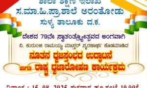 ಅರಂತೋಡು ಸ.ಮಾ.ಹಿ.ಪ್ರಾ.ಶಾಲೆಯಲ್ಲಿ 79ನೇ ಸ್ವಾತಂತ್ರೋತ್ಸವದ ಅಂಗವಾಗಿ ದಿ.ಕುರುಂಜಿ ರಾಮಯ್ಯ ಮಾಸ್ತರ್ ಸ್ಮರಣಾರ್ಥ ನಿರ್ಮಿಸಿದ ನೂತನ ಧ್ವಜಸ್ತಂಭದ ಉದ್ಘಾಟನೆ ಹಾಗೂ ಸ್ವಾತಂತ್ರ್ಯ ದಿನಾಚರಣೆ ಆ.15 ರಂದು ನಡೆಯಲಿದೆ. ಧ್ವಜಸ್ತಂಭದ ಉದ್ಘಾಟನೆಯನ್ನು ನಿವೃತ್ತ ಮುಖ್ಯೋಪಾಧ್ಯಾಯರಾದ ಜತ್ತಪ್ಪ.ಎ.ಕೆ ನೆರವೇರಿಸಲಿದ್ದಾರೆ. ಕಾರ್ಯಕ್ರಮದ ಅಧ್ಯಕ್ಷತೆಯನ್ನು ಗ್ರಾ.ಪಂ.ಅಧ್ಯಕ್ಷರಾದ ಕೇಶವ ಅಡ್ತಲೆ ವಹಿಸಲಿದ್ದಾರೆ. ನಿವೃತ್ತ ಪ್ರಾಂಶುಪಾಲರು ಹಾಗೂ ಧ್ವಜಸ್ತಂಭದ ದಾನಿಗಳಾದ ಕೆ.ಆರ್. ಗಂಗಾಧರ, ಕೆಡಿಪಿ ಸದಸ್ಯರಾದ...