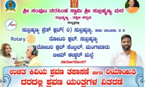 (ವರದಿ : ಉಲ್ಲಾಸ್ ಕಜ್ಜೋಡಿ)ಶ್ರೀ ಸಂಪುಟ ನರಸಿಂಹ ಸ್ವಾಮಿ ಶ್ರೀ ಸುಬ್ರಹ್ಮಣ್ಯ ಮಠ ಇದರ ನೇತೃತ್ವದಲ್ಲಿ ಸುಬ್ರಹ್ಮಣ್ಯ ಪ್ರೆಸ್ ಕ್ಲಬ್(ರಿ.) ಕಡಬ ತಾಲೂಕು, ರೋಟರಿ ಕ್ಲಬ್ ಸುಬ್ರಹ್ಮಣ್ಯ, ರೋಟರಿ ಕ್ಲಬ್ ಸೆಂಟ್ರಲ್ ಮಂಗಳೂರು ಹಾಗೂ ಟೀಂ ಈಶ್ವರ್ ಮಲ್ಪೆ ಇವರುಗಳ ಸಹಯೋಗದೊಂದಿಗೆ ಆ.30 ಹಾಗೂ 31 ರಂದು ಬೆಳಿಗ್ಗೆ 10:00 ಗಂಟೆಯಿಂದ ಸಂಜೆ 5:00 ಗಂಟೆಯವರೆಗೆ...