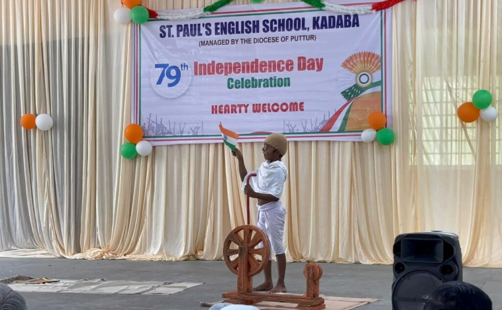 ಸೈಂಟ್ ಪೌಲ್ಸ್ ಇಂಗ್ಲಿಷ್ ಮೀಡಿಯಂ ಶಾಲೆ ಕಡಬ ಇಲ್ಲಿ 79ನೇ ಸ್ವಾತಂತ್ರ್ಯ ದಿನಾಚರಣೆಯ ಅಂಗವಾಗಿ ನಡೆದ ಸಾಂಸ್ಕೃತಿಕ ಕಾರ್ಯಕ್ರಮದಲ್ಲಿ ವಿದ್ವತ್.ಹೆಚ್.ವೈ ಹೊಸೊಳಿಕೆ ರವರ ಗಾಂಧೀಜಿ ಪಾತ್ರ ಜನ-ಮನ ಗೆದ್ದಿತು. ಯೋಗೀಶ್ ಹೊಸೊಳಿಕೆ ನಿರ್ದೇಶಿಸಿದರು.