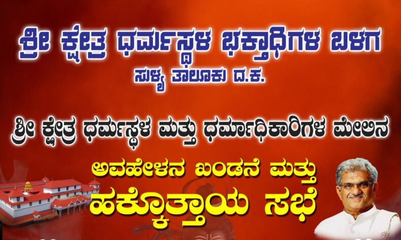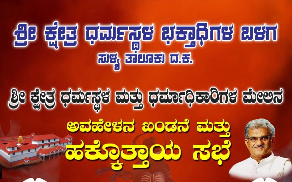 ನಾಳೆ (ಸೆ.08) ಶ್ರೀ ಕ್ಷೇತ್ರ ಧರ್ಮಸ್ಥಳ ಮತ್ತು ಧರ್ಮಾಧಿಕಾರಿಗಳ ಮೇಲಿನಅವಹೇಳನ ಖಂಡಿಸಿ ಹಕ್ಕೊತ್ತಾಯ ಸಭೆ
