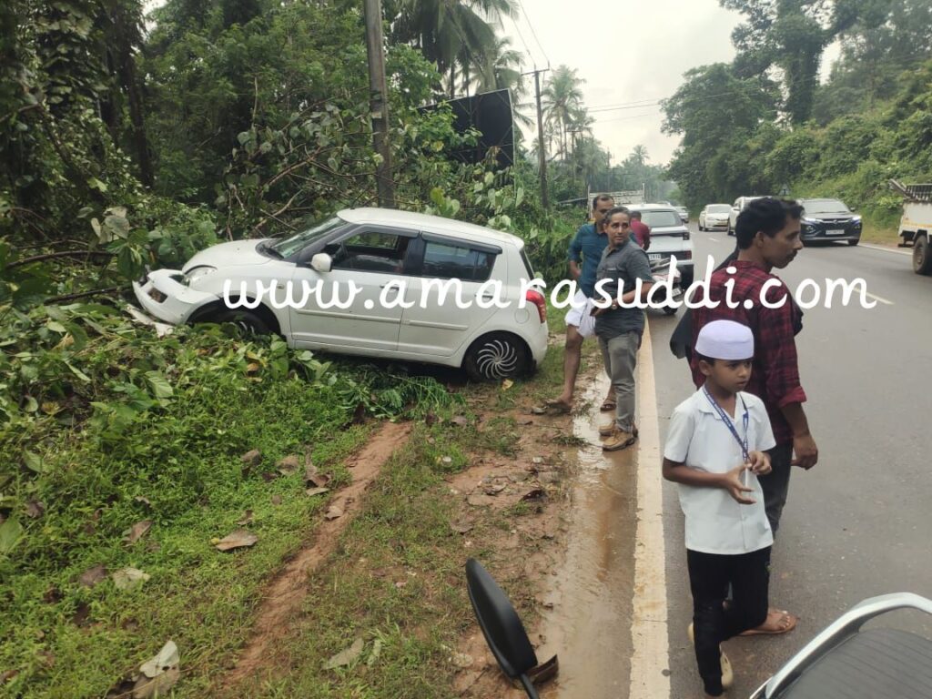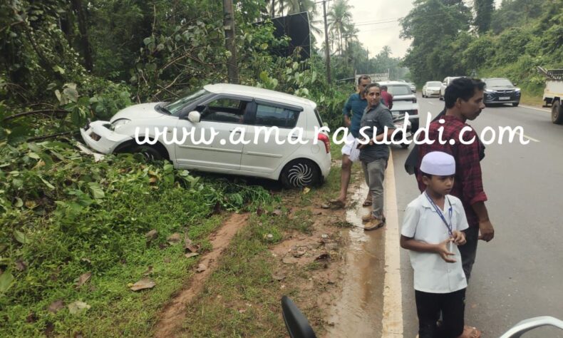 ಮಾಣಿ ಮೈಸೂರು ರಾಷ್ಟ್ರೀಯ ಹೆದ್ದಾರಿಯ ಬೊಳುಬೈಲು ಸಮೀಪ ಚಾಲಕನ ನಿಯಂತ್ರಣ ತಪ್ಪಿ ರಸ್ತೆಯಿಂದ ಕೆಳಗಿಳಿದ ಘಟನೆ ಇಂದು ಸಂಜೆ ನಡೆದಿದೆ. ಕಾರು ಸುಳ್ಯದಿಂದ ಕಾಸರಗೋಡು ಕಡೆಗೆ ತೆರಳುತ್ತಿತ್ತೆನ್ನಲಾಗಿದೆ. ಕಾರಿನಲ್ಲಿದ್ದ ಇಬ್ಬರು ಪ್ರಯಾಣಿಕರು ಅಪಾಯದಿಂದ ಪಾರಾಗಿದ್ದಾರೆ. ಕಾರಿನ ಮುಂಭಾಗ ಜಖಂಗೊಂಡಿದೆ.