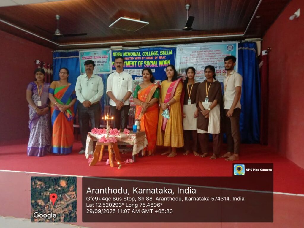 ಮುಖ್ಯ ಅತಿಥಿಗಳಾಗಿ ನೆಹರೂ ಮೆಮೋರಿಯಲ್ ಕಾಲೇಜಿನ ಸಮಾಜಕಾರ್ಯ ವಿಭಾಗದ ಸಹಾಯಕ ಪ್ರಾಧ್ಯಾಪಕರಾದ ಶ್ರೀಮತಿ ಶೋಭಾ.ಎ ಪ್ರಾಸ್ತಾವಿಕ ಮಾತುಗಳನ್ನಾಡಿದರು.