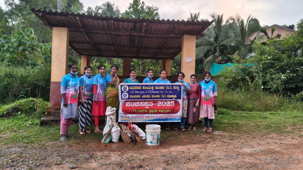 ಯುವಜನ ಸಂಯುಕ್ತ ಮಂಡಳಿ(ರಿ.) ಸುಳ್ಯ ಹಾಗೂ ಮಯೂರಿ ಯುವತಿ ಮಂಡಲ(ರಿ.) ಚೊಕ್ಕಾಡಿ ಇದರ ವತಿಯಿಂದ “ಪಂಚ ಸಪ್ತತಿ ಸ್ವಚ್ಛತಾ ಅಭಿಯಾನ 2025”  ಕಾರ್ಯಕ್ರಮದ ಅಂಗವಾಗಿ ನಾಲ್ಕನೆಯ ಸ್ವಚ್ಛತಾ  ಕಾರ್ಯಕ್ರಮವನ್ನು ದಿನಾಂಕ ನ.02 ಆದಿತ್ಯವಾರ ಚೆನ್ನಪರಿ ಬಸ್ಸು ತಂಗುದಾಣವನ್ನು ಶುಚಿಗೊಳಿಸಿ ಸುತ್ತ ಮುತ್ತಲಿನ ಪರಿಸರವನ್ನು ಸ್ವಚ್ಛಗೊಳಿಸುವುದರ ಮೂಲಕ  ನಡೆಸಲಾಯಿತು.