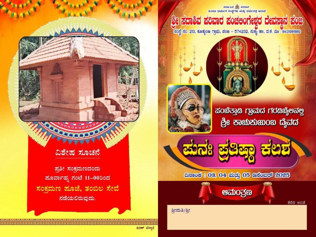 ಪಂಜ : ಡಿ.03 ರಿಂದ 05 ರವರೆಗೆ ಪಂಬೆತ್ತಾಡಿ ಗ್ರಾಮದ ಗರಡಿಬೈಲಿನ ಶ್ರೀ ಕಾಚುಕುಜುಂಬ ದೈವದ ಪುನಃ ಪ್ರತಿಷ್ಠಾ ಕಲಶ