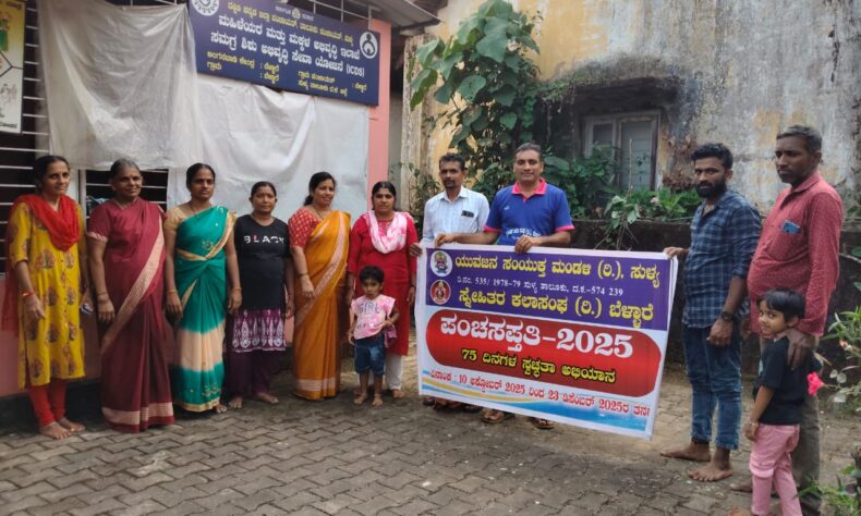 ಸುಳ್ಯ ತಾಲೂಕು ಯುವಜನ ಸಂಯುಕ್ತ ಮಂಡಳಿ ಮತ್ತು ಸ್ನೇಹಿತರ ಕಲಾ ಸಂಘ ಆಶ್ರಯ ದಲ್ಲಿ 75 ದಿನಗಳ ಸ್ವಚ್ಛತಾ ಅಭಿಯಾನ ಪಂಚ ಸಪ್ತತಿ 2025 ಅಂಗವಾಗಿ ನಮ್ಮ ನಡಿಗೆ ಸ್ವಚ್ಛತೆಯಡೆಗೆ ಸ್ವಚ್ಛತಾ ಕಾರ್ಯಕ್ರಮ ನ. 12 ರಂದು ಬೆಳ್ಳಾರೆ ಅಂಗನವಾಡಿ ಕೇಂದ್ರದಲ್ಲಿ ನಡೆಸಲಾಯಿತು.
