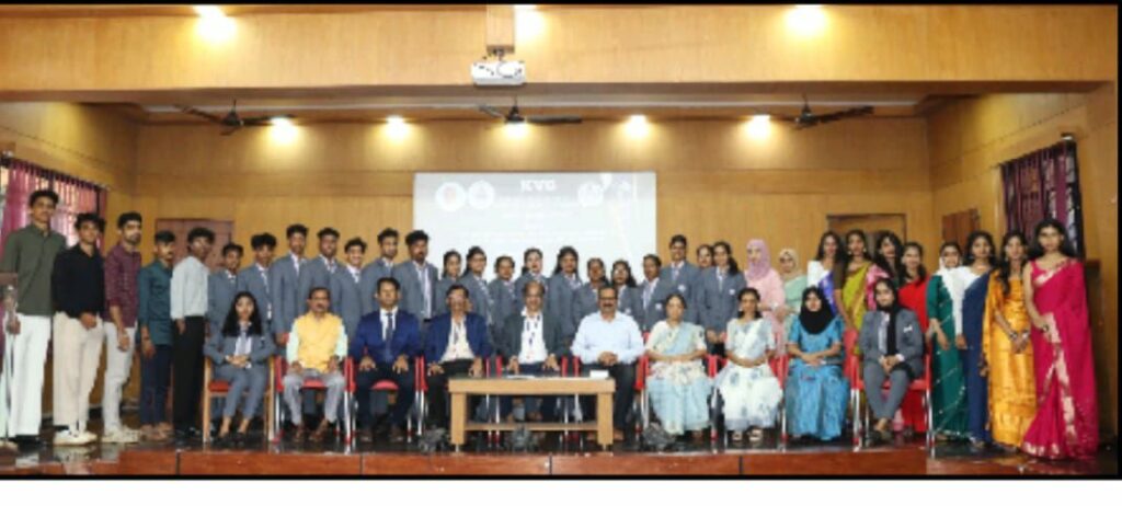 ಕೆ.ವಿ.ಜಿ ತಾಂತ್ರಿಕ ಮಹಾವಿದ್ಯಾಲಯ ಎಂ.ಬಿ.ಎ ವಿಭಾಗದ 2025-26ನೇ ಸಾಲಿನ ವಿದ್ಯಾರ್ಥಿ ಸಂಘ ಮತ್ತು ಪ್ರಥಮ ವರ್ಷದ ವಿದ್ಯಾರ್ಥಿಗಳ ಸ್ವಾಗತ ಕಾರ್ಯಕ್ರಮವು ಡಿ.02ರಂದು ಕೆ.ವಿ.ಜಿ. ಇಂಜಿನಿಯರಿಂಗ್ ಕಾಲೇಜಿನ ಸಭಾಂಗಣದಲ್ಲಿ ನಡೆಯಿತು. ಮುಖ್ಯ ಅತಿಥಿಗಳಾದ ಕೆ.ಬಿ.ಕೀರ್ತನ್ ಕುಮಾರ್ ಮಂಗಳೂರು ಇವರು ಕಾರ್ಯಕ್ರಮವನ್ನು ಉದ್ಘಾಟಿಸಿ ಮಾತನಾಡಿ ವಿದ್ಯಾರ್ಥಿಗಳಿಗೆ ಉದ್ಯೋಗ ಕ್ಷೇತ್ರದ ಅವಕಾಶಗಳ ಬಗ್ಗೆ ಹಾಗೂ ಭವಿಷ್ಯದ ಸವಾಲುಗಳನ್ನು ಧೈರ್ಯವಾಗಿ ಎದುರಿಸಲು ಸಲಹೆ ನೀಡಿದರು. ಕಾಲೇಜಿನ ಪ್ರಾಂಶುಪಾಲ ಡಾ.ಸುರೇಶ.ವಿ ಯವರು ಮಾತನಾಡಿ ವಿದ್ಯಾರ್ಥಿಗಳ ಮುಂದಿನ ಭವಿಷ್ಯಕ್ಕೆ ಶಿಸ್ತು ಹಾಗು ಸಂಯಮವನ್ನು ಜೀವನದಲ್ಲಿ ಅಳವಡಿಸುವಂತೆ ಮಾರ್ಗದರ್ಶನವನ್ನು ನೀಡಿದರು. ಉಪಪ್ರಾಂಶುಪಾಲ ಡಾ. ಶ್ರೀಧರ್.ಕೆ ಇವರು ವಿದ್ಯಾರ್ಥಿಗಳಿಗೆ ಶುಭ ಹಾರೈಸಿದರು. ಎಂ.ಬಿ.ಎ ವಿಭಾಗದ ಮುಖ್ಯಸ್ಥ ಪ್ರೊ. ಕೃಷ್ಣಾನಂದ.ಎ ಮತ್ತು ವಿದ್ಯಾರ್ಥಿ ಸಲಹೆಗಾರರಾದ ಪ್ರೊ. ಮನೋಹರ ಎ.ಎನ್, ಕೋಶಾಧಿಕಾರಿ ರವೀಶ.ಪಿ, ನೂತನ ಉಪಾಧ್ಯಕ್ಷೆ ರಿಶಿಕಾ ಎಂ.ಜಿ ಮತ್ತು ಕಾರ್ಯದರ್ಶಿ ತೌಶಿರಾ ಜಿ.ಎಲ್ ರವರು ವೇದಿಕೆಯಲ್ಲಿ ಉಪಸ್ಥಿತರಿದ್ದರು.