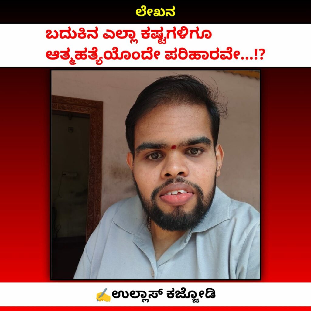 ಲೇಖನ : ಬದುಕಿನ ಎಲ್ಲಾ ಕಷ್ಟಗಳಿಗೂ ಆತ್ಮಹತ್ಯೆಯೊಂದೇ ಪರಿಹಾರವೇ…!? – ಬದುಕಿನಲ್ಲಿ ಬರುವ ಕಷ್ಟಗಳಿಗೆ ಹೆದರಿ ಬದುಕನ್ನೇ ಅಂತ್ಯಗೊಳಿಸಿಕೊಳ್ಳುವುದು ಅದೆಷ್ಟು ಸರಿ…?? ; ✍️ಉಲ್ಲಾಸ್ ಕಜ್ಜೋಡಿ