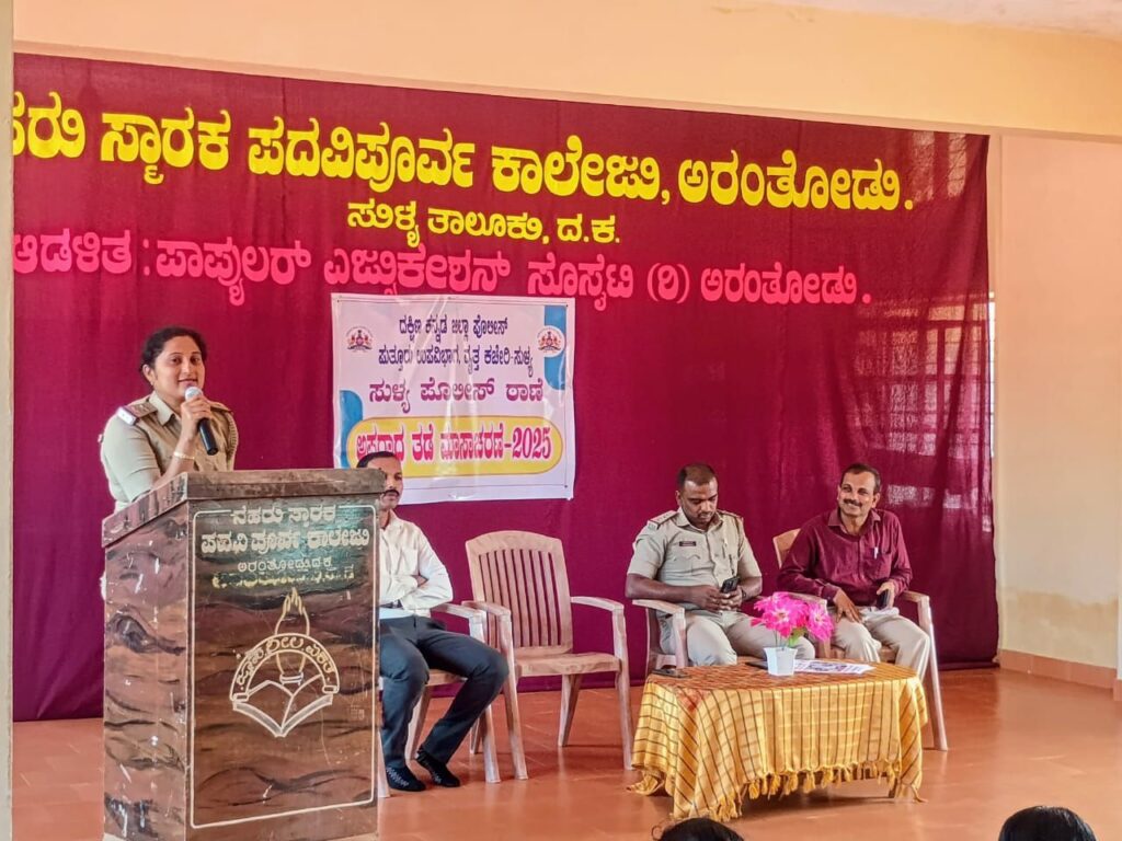 ಅರಂತೋಡು : ನೆಹರು ಸ್ಮಾರಕ ಪದವಿ ಪೂರ್ವ ಕಾಲೇಜು ಅರಂತೋಡು ಮತ್ತು ಸುಳ್ಯ ಪೋಲಿಸ್ ಠಾಣೆ ಜಂಟಿ ಆಶ್ರಯದಲ್ಲಿ ಅಪರಾಧ ತಡೆ ಮಾಸಾಚರಣೆ-2025 ನಡೆಯಿತು.