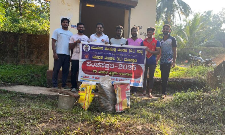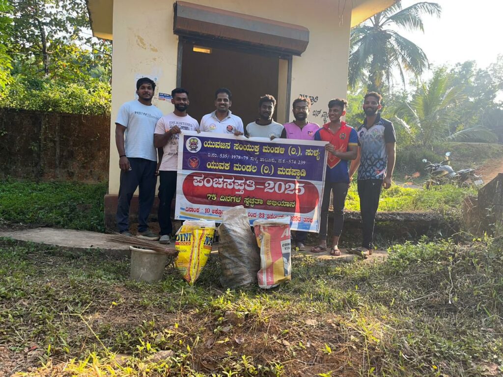 ಯುವಜನ ಸಂಯುಕ್ತ ಮಂಡಳಿ(ರಿ.) ಸುಳ್ಯ ಹಾಗೂ ಯುವಕ ಮಂಡಲ(ರಿ.) ಮಡಪ್ಪಾಡಿ ಇದರ ಆಶ್ರಯದಲ್ಲಿ ಪಂಚಸಪ್ತತಿ  ಸ್ವಚ್ಛತಾ ಅಭಿಯಾನ-2025(75 ದಿನಗಳ ಸ್ವಚ್ಛತಾ ಅಭಿಯಾನ) ಕಾರ್ಯಕ್ರಮ ಯಶಸ್ವಿಯಾಗಿ ನಡೆಯುತ್ತಿದ್ದು, ದಿನಾಂಕ ಡಿ.14 ಭಾನುವಾರ ಸಂಜೆ ಮಡಪ್ಪಾಡಿಯ ಕೇವಳ ಬಳಿಯ ಬಲ್ಕಜೆ ಬಸ್ ನಿಲ್ದಾಣ ಹಾಗೂ ಸುತ್ತಮುತ್ತ ಸ್ವಚ್ಛತಾ ಕಾರ್ಯ ಮಾಡಲಾಯಿತು.