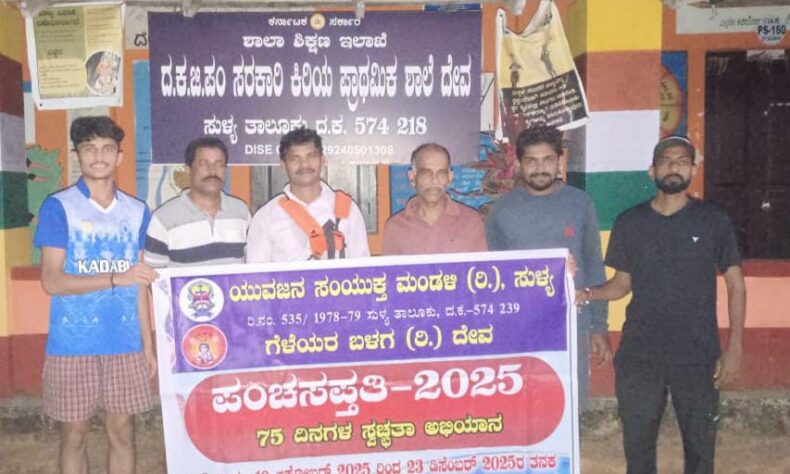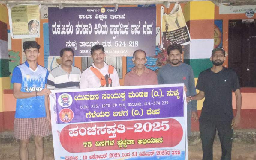 ಯುವಜನ ಸಂಯುಕ್ತ ಮಂಡಳಿ ಹಮ್ಮಿಕೊಂಡಿರುವ “ಪಂಚಸಪ್ತತಿ – 2025” ಸ್ವಚ್ಚತಾ ಕಾರ್ಯಕ್ರಮದಲ್ಲಿ ದೇವ ಗೆಳೆಯರ ಬಳಗದ ವತಿಯಿಂದ  ದೇವ ಸರಕಾರಿ ಕಿರಿಯ ಪ್ರಾಥಮಿಕ ಶಾಲಾ ವಠಾರ ಸ್ವಚ್ಚತೆಯನ್ನು ಮಾಡಲಾಯಿತು.