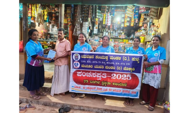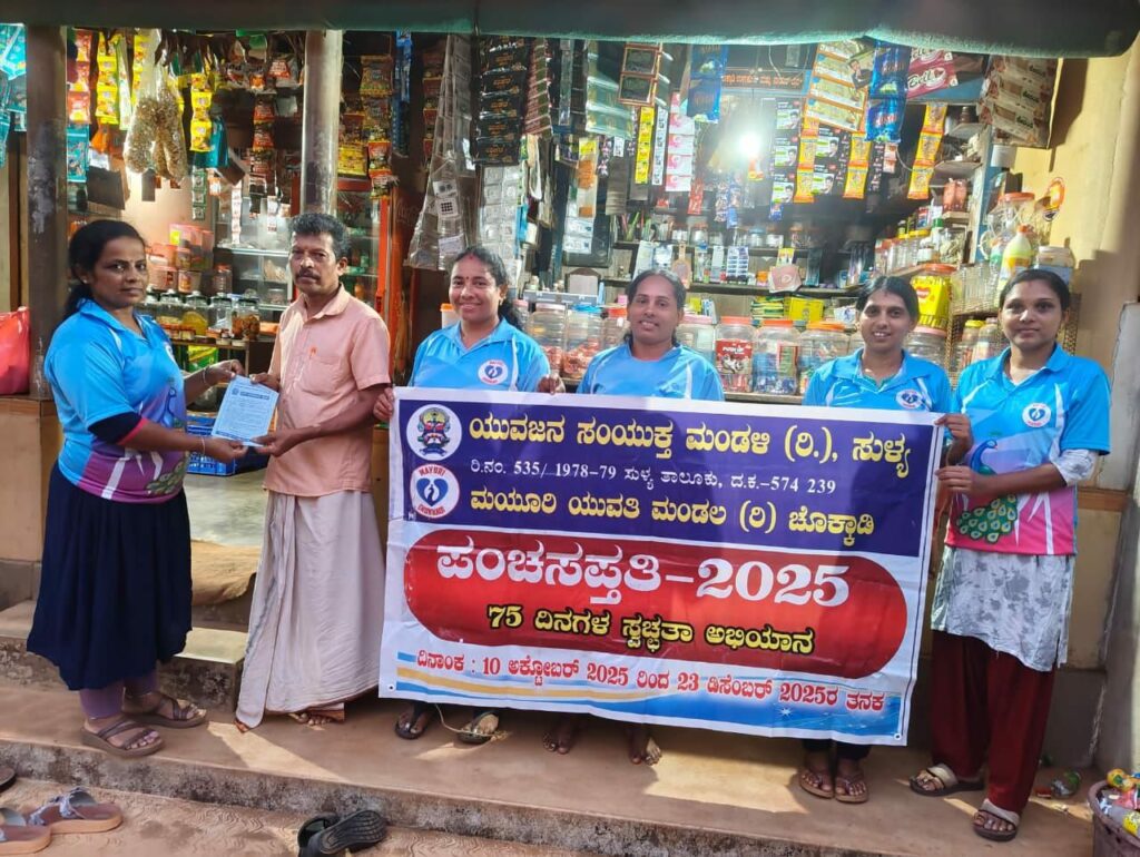 ಯುವಜನ ಸಂಯುಕ್ತ ಮಂಡಳಿ (ರಿ.) ಸುಳ್ಯ ಹಾಗೂ ಮಯೂರಿ ಯುವತಿ ಮಂಡಲ (ರಿ.) ಚೊಕ್ಕಾಡಿ ಇವರ ಸಂಯುಕ್ತ ಆಶ್ರಯದಲ್ಲಿ ಆಯೋಜಿಸಲಾದ ಪಂಚಸಪ್ತತಿ ಸ್ವಚ್ಛತಾ ಅಭಿಯಾನ – 2025 ಕಾರ್ಯಕ್ರಮದ ಅಂಗವಾಗಿ ದಿನಾಂಕ ಡಿ.08ರಂದು ಅಮರಪಡ್ನೂರು ಗ್ರಾಮದ ಅಂಗಡಿಗಳಿಗೆ ಸ್ವಚ್ಛತೆಗೆ ಸಂಬಂಧಿಸಿದ ಜಾಗೃತಿ ಕರಪತ್ರಗಳನ್ನು ಹಂಚಲಾಯಿತು.