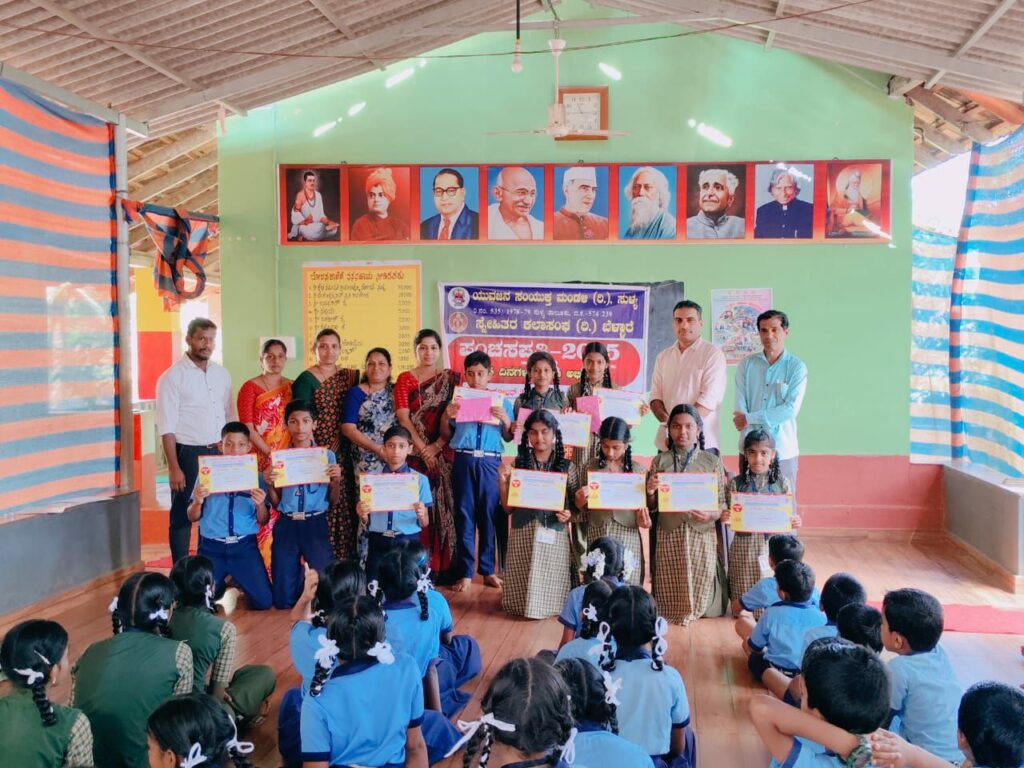 ಸುಳ್ಯ ತಾಲೂಕು ಯುವಜನ ಸಂಯುಕ್ತ ಮಂಡಳಿ ಮತ್ತು ಸ್ನೇಹಿತರ ಕಲಾ ಸಂಘ ಆಶ್ರಯ ದಲ್ಲಿ “75 ದಿನಗಳ ಸ್ವಚ್ಛತಾ ಅಭಿಯಾನ ಪಂಚ ಸಪ್ತತಿ 2025” ಇದರ ಅಂಗವಾಗಿ  “ನಮ್ಮ ಗ್ರಾಮ ಸ್ವಚ್ಛ ಗ್ರಾಮ, ಸ್ವಚ್ಛತೆಯೆಡೆಗೆ ನಮ್ಮ ನಡಿಗೆ” ಯೋಜನೆಯಂತೆ, “ಶಾಲೆಯತ್ತ ನಮ್ಮ ಚಿತ್ತ” ಬೆಳ್ಳಾರೆ  ಶಾಲಾ ವಿದ್ಯಾರ್ಥಿಗಳಿಗೆ  “ನಮ್ಮ ಶಾಲೆ ಸ್ವಚ್ಛ ಶಾಲೆ” ಎಂಬ ವಿಷಯದ  ಬಗ್ಗೆ ಪ್ರಬಂಧ ಸ್ಪರ್ಧಾ ಕಾರ್ಯಕ್ರಮವು ಡಿ.22 ರಂದು ದರ್ಖಾಸ್ತು ಸರಕಾರಿ ಹಿರಿಯ ಪ್ರಾಥಮಿಕ ಶಾಲೆಯಲ್ಲಿ  ನಡೆಯಿತು. ಸ್ನೇಹಿತರ ಕಲಾ ಸಂಘದ ಕ್ರೀಡಾ ಮತ್ತು ಸಾಂಸ್ಕೃತಿಕ  ಕಾರ್ಯದರ್ಶಿ ಮಹಾಲಿಂಗ ಪಾಟಾಳಿ ಕುರುಂಬುಡೇಲು  ಪೂರ್ವಾಧ್ಯಕ್ಷ ಸಂಜಯ್ ನೆಟ್ಟಾರು, ಶಾಲೆಯ ಮುಖ್ಯ ಶಿಕ್ಷಕಿ ಶ್ರೀಮತಿ ಪ್ರೇಮ, ಸಹ ಶಿಕ್ಷಕರಾದ ಬಾಲಾಜಿ ಟಿ, ಶ್ರೀಮತಿ ಶ್ವೇತಾ ಎಂ.ಬಿ, ಶ್ರೀಮತಿ ಸೆಮಿಮಾ ಡಿ.ಎಚ್, ಕು. ಶ್ರದ್ದಾ ಮತ್ತು ಎಸ್.ಡಿ. ಎಂ.ಸಿ ಸದಸ್ಯರಾದ ಶ್ರೀಮತಿ ಚಂದ್ರಿಕಾ,ಶ್ರೀಮತಿ ಸುಮಿತ್ರಾ ಉಪಸ್ಥಿತರಿದ್ದರು.