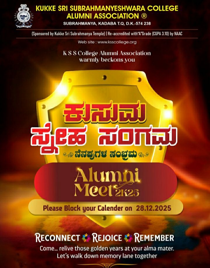 ಸುಬ್ರಹ್ಮಣ್ಯ : ಡಿ.28ರಂದು ಕೆ.ಎಸ್.ಎಸ್ ಕಾಲೇಜಿನಲ್ಲಿ ಹಳೆ ವಿದ್ಯಾರ್ಥಿ ಸಂಘದ “ಕುಸುಮ ಸ್ನೇಹ ಸಂಗಮ” ಕಾರ್ಯಕ್ರಮ