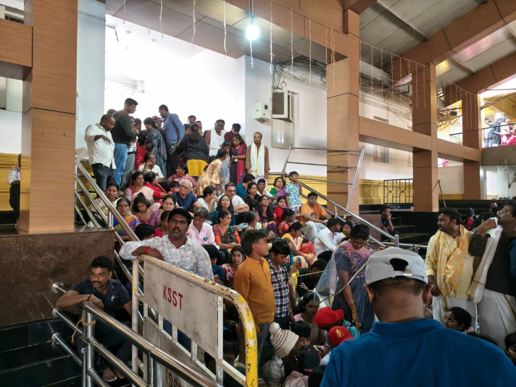 ಸುಬ್ರಹ್ಮಣ್ಯ ಡಿಸೆಂಬರ್ 26 : ಕುಕ್ಕೆ ಶ್ರೀ ಸುಬ್ರಹ್ಮಣ್ಯ ದೇವಸ್ಥಾನದ ಕಿರುಷಷ್ಠಿ  ಮಹೋತ್ಸವದ ಶುಕ್ರವಾರದ ದಿನದಂದು ಅಧಿಕ ಸಂಖ್ಯೆಯಲ್ಲಿ ಭಕ್ತಾದಿಗಳು ಶ್ರೀ ಕ್ಷೇತ್ರಕ್ಕೆ ಆಗಮಿಸಿದ್ದು, ಅಂದಾಜು ಸುಮಾರು 30 ಸಾವಿರಕ್ಕೂ ಅಧಿಕ ಭಕ್ತಾದಿಗಳು ಶ್ರೀ ದೇವರ ದರ್ಶನ ಹಾಗೂ ಪ್ರಸಾದ ಸ್ವೀಕರಿಸಿದ್ದಾರೆ. ದೂರದ ಊರುಗಳಾದ ಬೆಂಗಳೂರು, ಮೈಸೂರು, ಕೋಲಾರ, ದೊಡ್ಡಬಳ್ಳಾಪುರ, ಕಾರವಾರ, ಹುಬ್ಬಳ್ಳಿ, ದಾವಣಗೆರೆ, ಧಾರವಾಡ, ಶಿವಮೊಗ್ಗ, ವಿಜಯಪುರ, ಬಳ್ಳಾರಿ, ಚಿಕ್ಕಮಗಳೂರು, ಹಾಸನ, ತುಮಕೂರು ಮುಂತಾದಡೆಗಳಿಂದ ಬಹಳಷ್ಟು ಭಕ್ತರು ಸರಕಾರಿ ಹಾಗೂ ಖಾಸಗಿ ಬಸ್ಸಿನಲ್ಲಿ ಶ್ರೀ ಕ್ಷೇತ್ರಕ್ಕೆ ನಿನ್ನೆ ರಾತ್ರಿಯಿಂದಲೇ ಆಗಮಿಸುತ್ತಿದ್ದು, ಕಿರುಷಷ್ಠಿ ಮಹೋತ್ಸವದ ಈ ದಿನದಂದು ಕುಕ್ಕೆ ಶ್ರೀ ಸುಬ್ರಹ್ಮಣ್ಯ ದೇವರಿಗೆ ಬೆಳಿಗ್ಗೆ ವಿಶೇಷ ಪೂಜೆ, ಮಧ್ಯಾಹ್ನ ಮಹಾಪೂಜೆ ಹಾಗೂ ರಾತ್ರಿ ರಥ ಬೀದಿಯಲ್ಲಿ ರಥೋತ್ಸವ ನಡೆಯುವುದರಿಂದ ಅಧಿಕ ಸಂಖ್ಯೆಯ ಭಕ್ತಾದಿಗಳು ಆಗಮಿಸಿದ್ದರು. ಅಲ್ಲದೆ ಡಿಸೆಂಬರ್ ಅಂತ್ಯದ ರಜಾ ದಿನಗಳಲ್ಲಿ ಸರ್ಕಾರಿ ನೌಕರರ ಕುಟುಂಬದವರು, ಶಾಲಾ ಕಾಲೇಜು ವಿದ್ಯಾರ್ಥಿಗಳು ಹೆಚ್ಚಿನ ಸಂಖ್ಯೆಯಲ್ಲಿ ಕ್ಷೇತ್ರಕ್ಕೆ ಆಗಮಿಸಿದ್ದರು. ಕುಕ್ಕೆಯಲ್ಲಿರುವ ಎಲ್ಲಾ ಪಾರ್ಕಿಂಗ್ ಸ್ಥಳಗಳು ವಾಹನಗಳಿಂದ ಭರ್ತಿಯಾಗಿದ್ದು, ಈ ವರ್ಷ ವಿಶೇಷವಾಗಿ ಭಕ್ತಾದಿಗಳಿಗೆ ಮಧ್ಯಾಹ್ನದ ಭೋಜನ ಪ್ರಸಾದಕ್ಕಾಗಿ ಶ್ರೀ ದೇವಳದ ಪಕ್ಕದಲ್ಲಿ ಹೊಸದಾಗಿ ಭೋಜನ ಶಾಲೆಯನ್ನು ತಾತ್ಕಾಲಿಕವಾಗಿ ಏರ್ಪಾಡು ಮಾಡಿ ಅಲ್ಲಿ ಭೋಜನ ಪ್ರಸಾದ ನೀಡಲಾಯಿತು. ಭಕ್ತಾದಿಗಳ ದೇವರ ದರ್ಶನದ ಸರದಿ ವ್ಯವಸ್ಥೆಯನ್ನು ದೇವಳದ ಅಧಿಕಾರಿ ಸಿಬ್ಬಂದಿ ವರ್ಗದವರು ಹಾಗೂ ಭದ್ರತಾ ಸಿಬ್ಬಂದಿಗಳು ಅಚ್ಚುಕಟ್ಟಾಗಿ ನಿರ್ವಹಿಸಿದರು.
