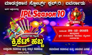ಮಾಡತ್ತಕಾನ ಸ್ಪೋರ್ಟ್ಸ್ ಕ್ಲಬ್(ರಿ.) ಐವರ್ನಾಡು ಇದರ ಆಶ್ರಯದಲ್ಲಿ ಡಿ.28ರಂದು ಐವರ್ನಾಡು ಸರ್ಕಾರಿ ಪದವಿಪೂರ್ವ ಕಾಲೇಜು ಮೈದಾನದಲ್ಲಿ “ಐವರ್ನಾಡು ಗ್ರಾಮ ಕ್ರಿಕೆಟ್ ಹಬ್ಬ - IPL Season 10” ನಡೆಯಲಿದ್ದು, ಬೆಳ್ಳಾರೆ ಪೋಲೀಸ್ ಸಬ್ ಇನ್ಸ್ಪೆಕ್ಟರ್ ಈರಯ್ಯ.ಡಿ.ಎನ್ ರವರು ಉದ್ಘಾಟಿಸಲಿದ್ದು, ಸುಳ್ಯ ಕೆ.ವಿ.ಜಿ ಐ.ಟಿ.ಐ ಪ್ರಾಂಶುಪಾಲರಾದ ದಿನೇಶ್ ಮಡ್ತಿಲ ಅಧ್ಯಕ್ಷತೆ ವಹಿಸಲಿದ್ದಾರೆ.ಮುಖ್ಯ ಅತಿಥಿಗಳಾಗಿ ಐವರ್ನಾಡು ಪ್ರಾಥಮಿಕ ಕೃಷಿ...