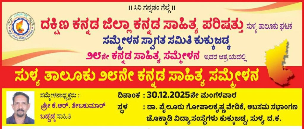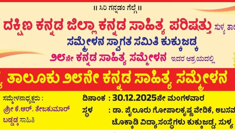 ನಾಳೆ(ಡಿ.30) ಚೊಕ್ಕಾಡಿಯಲ್ಲಿ ನಡೆಯಲಿರುವ ಸುಳ್ಯ ತಾಲೂಕು ಕನ್ನಡ ಸಾಹಿತ್ಯ ಸಮ್ಮೇಳನದಲ್ಲಿ ಭಾಗವಹಿಸುವ ತಾಲೂಕಿನ ಆಸಕ್ತ ಶಿಕ್ಷಕರಿಗೆ ಒ.ಒ.ಡಿ ಸೌಲಭ್ಯ