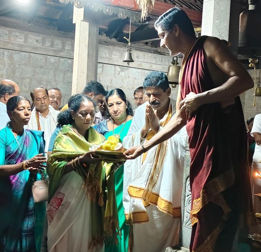 ಪಂಜ ಸಾವಿರ ಸೀಮೆ ಶ್ರೀ ಸದಾಶಿವ ಪರಿವಾರ ಪಂಚಲಿಂಗೇಶ್ವರ ದೇಗುಲಕ್ಕೆ ಇಂದು(ಜ.13) ಧನು ಪೂಜೆಗೆ ಸುಳ್ಯ ವಿಧಾನಸಭಾ ಕ್ಷೇತ್ರದ ಶಾಸಕಿ ಕು. ಭಾಗೀರಥಿ ಮುರುಳ್ಯರವರು ಆಗಮಿಸಿ ಧನು ಪೂಜೆಯ ವಿಶೇಷ ಪ್ರಸಾದವನ್ನು ಸ್ವೀಕರಿಸಿದರು.