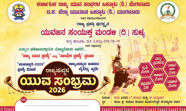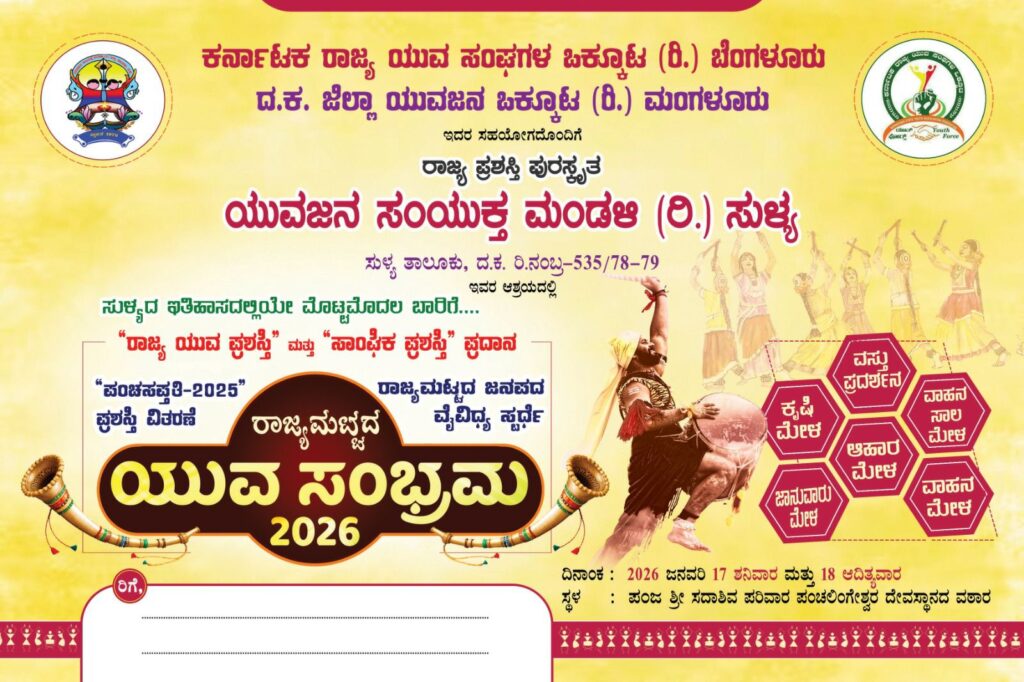 ಜ.17 ಮತ್ತು 18 ರಂದು ಎರಡು ದಿನಗಳ ಕಾಲ ಪಂಜದ ಶ್ರೀ ಸದಾಶಿವ ಪರಿವಾರ ಪಂಚಲಿಂಗೇಶ್ವರ ದೇವಸ್ಥಾನದ ವಠಾರದಲ್ಲಿ ನಡೆಯುವ ರಾಜ್ಯಮಟ್ಟದ ಯುವ ಸಂಭ್ರಮ 2026 ಕಾರ್ಯಕ್ರಮದಲ್ಲಿ ರಾಜ್ಯ ಯುವ ಪ್ರಶಸ್ತಿ ಮತ್ತು ಸಾಂಘಿಕ ಪ್ರಶಸ್ತಿ ಪ್ರದಾನ, ಪಂಚಸಪ್ತತಿ 2025 ಪ್ರಶಸ್ತಿ ವಿತರಣೆ, ರಾಜ್ಯಮಟ್ಡದ ಜನಪದ ವೈವಿಧ್ಯ ಸ್ಪರ್ಧೆ, ಕೃಷಿ ಮೇಳ, ವಸ್ತು ಪ್ರದರ್ಶನ, ಆಹಾರ ಮೇಳ, ವಾಹನ ಸಾಲ ಮೇಳ, ವಾಹನ ಮೇಳ ಹಾಗೂ ಮಿಶ್ರತಳಿ ಹೆಣ್ಣು ಕರುಗಳ ಪ್ರದರ್ಶನ, ವಿವಿಧ ಕಲಾ ತಂಡಗಳಿಂದ ಸಾಂಸ್ಕೃತಿಕ  ಸಂಭ್ರಮ  ಪ್ರದರ್ಶನಗೊಳ್ಳಲಿದೆ.