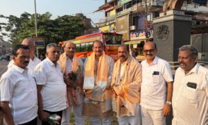 ಮಂಗಳೂರು ವಿದ್ಯುತ್ ಸರಬರಾಜು ನಿಗಮ(ನಿ.) ಮೆಸ್ಕಾಂ ಅಧ್ಯಕ್ಷರಾಗಿ ಅಧಿಕಾರ ವಹಿಸಿಕೊಂಡ ನಂತರ ಜ.19ರಂದು ಪ್ರಥಮ ಬಾರಿಗೆ ಆಗಮಿಸಿದ ಹರೀಶ್ ಕುಮಾರ್ ರವರನ್ನು ಕರ್ನಾಟಕ ಕಾರ್ಮಿಕರ ಕನಿಷ್ಠ ವೇತನ ಸಲಹಾ ಮಂಡಳಿ ಅಧ್ಯಕ್ಷ ಟಿ.ಎಂ. ಶಹೀದ್, ಸುಳ್ಯ ನಗರ ಯೋಜನಾ ಪ್ರಾಧಿಕಾರ(ಸೂಡ) ಅಧ್ಯಕ್ಷ ಕೆ.ಎಂ. ಮುಸ್ತಫ ಶಾಲು ಹಾಕಿ, ಪುಷ್ಪ ಗುಚ್ಚ ನೀಡಿ ಸ್ವಾಗತಿಸಿದರು. ಈ ಸಂದರ್ಭದಲ್ಲಿ...