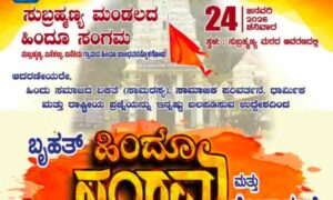 ಸುಬ್ರಹ್ಮಣ್ಯ, ಏನೆಕಲ್ಲು ಹಾಗೂ ಐನೆಕಿದು ಗ್ರಾಮಗಳ ಹಿಂದೂ ಸಂಗಮ ಸುಬ್ರಹ್ಮಣ್ಯ ಮಂಡಲದ ವತಿಯಿಂದ ಹಿಂದೂ ಸಮಾಜದ ಏಕತೆ, ಸಾಮರಸ್ಯ, ಸಾಮಾಜಿಕ ಪರಿವರ್ತನೆ ಹಾಗೂ ಧಾರ್ಮಿಕ ಮತ್ತು ರಾಷ್ಟ್ರೀಯ ಪ್ರಜ್ಞೆಯನ್ನು ಇನ್ನಷ್ಟು ಬಲಪಡಿಸುವ ಉದ್ದೇಶದಿಂದ ಜ.24ರಂದು ಸುಬ್ರಹ್ಮಣ್ಯದಲ್ಲಿ “ಬೃಹತ್ ಹಿಂದೂ ಸಂಗಮ ಮತ್ತು ಶೋಭಾಯಾತ್ರೆ” ನಡೆಯಲಿದ್ದು, ಸಂಜೆ 3:00 ಗಂಟೆಯಿಂದ ಕಾಶಿಕಟ್ಟೆ ಮಹಾಗಣಪತಿ ಸನ್ನಿಧಾನದಿಂದ ಸುಬ್ರಹ್ಮಣ್ಯ ಮಠದವರೆಗೆ...