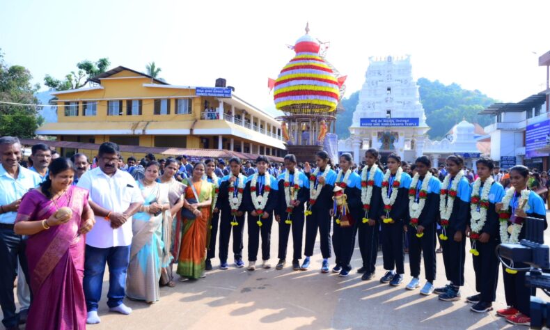 ಕುಕ್ಕೆ ಸುಬ್ರಹ್ಮಣ್ಯ : ರಾಷ್ಟ್ರ ಮಟ್ಟದಲ್ಲಿ ಚಿನ್ನದ ಪದಕ ಪಡೆದ ಕರ್ನಾಟಕ ತಂಡಕ್ಕೆ ಭವ್ಯ ಸ್ವಾಗತ