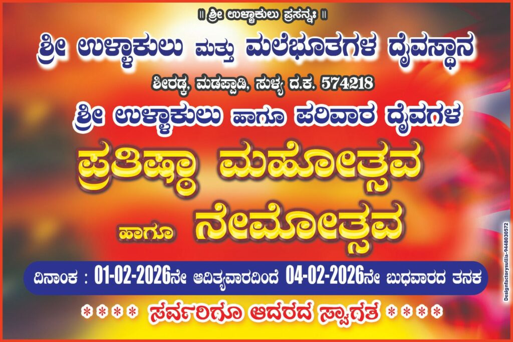 ಮಡಪ್ಪಾಡಿ : ಫೆ.01 ರಿಂದ 4 ರವರೆಗೆ ಶೀರಡ್ಕದಲ್ಲಿ ಶ್ರೀ ಉಳ್ಳಾಕುಲು ಹಾಗೂ ಪರಿವಾರ ದೈವಗಳ ಪ್ರತಿಷ್ಠಾ ಮಹೋತ್ಸವ ಹಾಗೂ ನೇಮೋತ್ಸವ