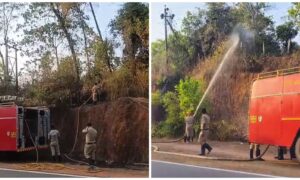 ಸೋಣಂಗೇರಿ ಸುಬ್ರಹ್ಮಣ್ಯ ರಸ್ತೆಯ ಸುತ್ತುಕೋಟೆ ಜಾಗೂ ಮಿತ್ತಮಜಲು ಬಳಿ ಗುಡ್ಡಕ್ಕೆ ಬೆಂಕಿ ತಗುಲಿದ ಘಟನೆ ಇಂದು ಸಂಜೆ ನಡೆದಿದೆ. ವಿದ್ಯುತ್ ಲೈನ್ ನಿಂದ ಗುಡ್ಡಕ್ಕೆ ಬೆಂಕಿ ತಗುಲಿದ್ದು ಅಗ್ನಿಶಾಮಕ ದಳದವರು ಹಾಗೂ ನಾಗರಿಕರು ಬೆಂಕಿ ನಂದಿಸಿದರು.