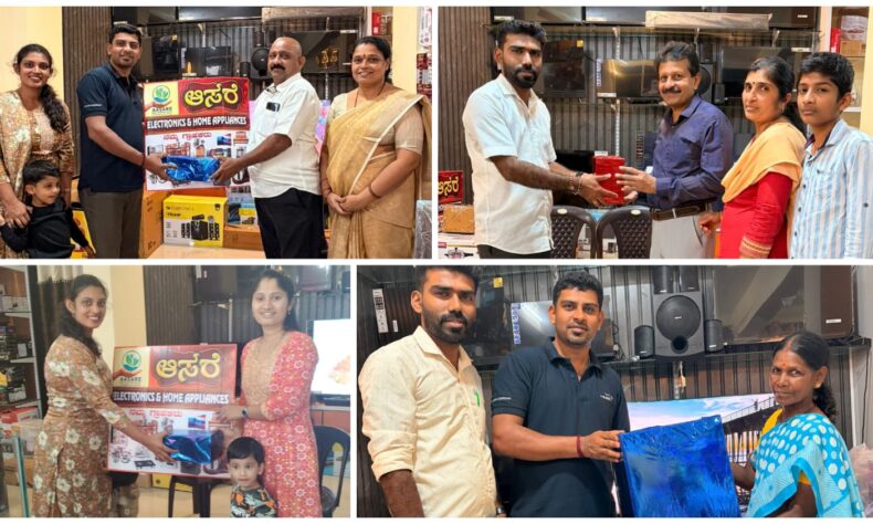 ಆಸರೆ ಇಲೆಕ್ಟ್ರಾನಿಕ್ಸ್ ನಲ್ಲಿ ಅದೃಷ್ಟ ಗ್ರಾಹಕರ ಆಯ್ಕೆ ಮಾಡಿ ಬಹುಮಾನ ನೀಡುವ ಯೋಜನೆ ಹಮ್ಮಿಕೊಳ್ಳಲಾಗಿತ್ತು.‌ ನಿವೃತ್ತ ಎ.ಎಸ್.ಐ ಸುಬ್ಬಣ್ಣ ಮಣಿಯಾನ ಮನೆ ಇವರು ಅದೃಷ್ಟ ಗ್ರಾಹಕರ ಆಯ್ಕೆ ನಡೆಸಿಕೊಟ್ಟರು. ಅದೃಷ್ಟ ಗ್ರಾಹಕರಾಗಿ ಆಯ್ಜೆಯಾದ ಶ್ರೀಮತಿ ದನ್ಯಾಮಿಥುನ್ ಪೇರಾಲು, ಜಾಕೆ ನವೀನ್ ಮತ್ತು ಮನೆಯವರು, ಶ್ರೀಮತಿ‌ ಮತ್ತು ಶ್ರೀ ಶೈಲೇಶ್ ಅಂಬೆಕಲ್ಲು, ಚಿನ್ನಮ್ಮ ಬಾಕಿಲ ಇವರಿಗೆ ಸಂಸ್ಥೆಯ ಮಾಲಕರು‌ ಬಹುಮಾನ‌ ವಿತರಿಸಿದರು.