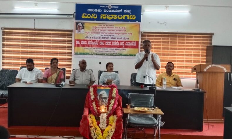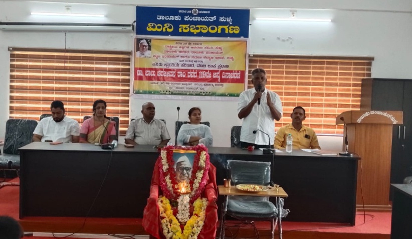 ರಾಷ್ಟ್ರೀಯ ಹಬ್ಬಗಳ ಆಚರಣಾ ಸಮಿತಿ, ಸುಳ್ಯ ತಾಲೂಕು ಆಡಳಿತದ ವತಿಯಿಂದ ಭಾರತದ ಮಾಜಿ ಉಪ ಪ್ರಧಾನಿ ಡಾ.ಬಾಬು ಜಗಜ್ಜೀವನ್ ರಾಂ ರವರ 119ನೇ ಜನ್ಮ ದಿನಾಚರಣೆ ಸುಳ್ಯ ತಾಲೂಕು ಪಂಚಾಯತ್ ಸಭಾಂಗಣದಲ್ಲಿ ಜರಗಿತು. ಅಧ್ಯಕ್ಷತೆಯನ್ನು ಸುಳ್ಯ ತಾಲೂಕು ತಹಶೀಲ್ದಾರ್ ಶ್ರೀಮತಿ ಮಂಜುಳಾ ಕೆ.ಎ.ಎಸ್ ವಹಿಸಿದ್ದರು. ಕಾರ್ಯಕ್ರಮವನ್ನು ಉದ್ಘಾಟಿಸಿ ಮಾತನಾಡಿದ ಸುಳ್ಯ ನಗರ ಯೋಜನಾ ಪ್ರಾಧಿಕಾರ(ಸೂಡ) ಅಧ್ಯಕ್ಷ ಕೆ. ಎಂ. ಮುಸ್ತಫ “ಡಾ.ಬಾಬು ಜಗಜ್ಜೀವನ್ ರಾಂ ರವರು ರಕ್ಷಣಾ ಸಚಿವರಾಗಿ ದೇಶದ ಭದ್ರತೆಗೆ ದೃಢ ನೀತಿಯನ್ನು ತಂದರು 1971ರಲ್ಲಿ ಯುದ್ಧವನ್ನು ಯಶಸ್ವಿಯಾಗಿ ನಿಭಾಯಿಸಿ ಜಯಶಾಲಿಯಾದರು. ಕೃಷಿ ಸಚಿವರಾಗಿ ದೇಶವನ್ನು ಹಸಿರು ಕ್ರಾಂತಿಯ ಮೂಲಕ ಆಹಾರ ಧಾನ್ಯ ಸ್ವಾವಲಂಬನೆ ಸಾದಿಸಿದರು. ದೇಶ ಕಠಿಣ ಪರಿಸ್ಥಿತಿಯಲ್ಲೂ ನಿಭಾಯಿಸುವ ಶಕ್ತಿ ಹೊಂದಿದೆ ಎಂದರು. ಸುಳ್ಯ ತಾಲೂಕು ಗ್ಯಾರಂಟಿ ಅನುಷ್ಠಾನ ಸಮಿತಿ ಅಧ್ಯಕ್ಷ ಶಾಹುಲ್ ಹಮೀದ್, ತಾಲೂಕು ಪಂಚಾಯತ್ ಕಾರ್ಯ ನಿರ್ವಣಾಧಿಕಾರಿ ರಾಜಣ್ಣ, ಸಂದರ್ಬೊಚಿತವಾಗಿ ಮಾತನಾಡಿದರು. ಸಂಪನ್ಮೂಲ ವ್ಯಕ್ತಿಯಾಗಿ ಉಪನ್ಯಾಸ ನೀಡಿದ ಶಿಕ್ಷಣ ಇಲಾಖೆಯ ಶ್ರೀಮತಿ ಮಮತಾ ಡಾ. ಜಗಜ್ಜೀವನ್ ರಾಂ ರವರ ಜೀವನ ಚರಿತ್ರೆ ಹೇಳಿದರು. ಸಮಾಜ ಕಲ್ಯಾಣ ಇಲಾಖೆಯ ಸಹಾಯಕ ನಿರ್ದೇಶಕರಾದ ಕೃಷ್ಣ.ಬಿ ಸ್ವಾಗತಿಸಿ ಕಾರ್ಯಕ್ರಮ ನಿರೂಪಿಸಿದರು. ವಿಶ್ವನಾಥ್ ಮೇಲ್ವಿಚಾರಕರು ಮೆಟ್ರಿಕ್ ನಂತರದ ಬಾಲಕರ ವಸತಿ ನಿಲಯ ಇವರು ವಂದಿಸಿದರು.
