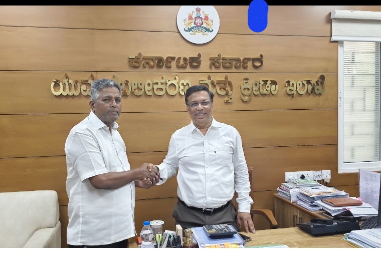 “ಸುಳ್ಯ ತಾಲೂಕು ಸುಳ್ಯ ನಗರ ವ್ಯಾಪ್ತಿಯ ಶಾಂತಿನಗರ ಎಂಬಲ್ಲಿ ಕ್ರೀಡಾoಗಣ ನಿರ್ಮಾಣ ಕಾಮಗಾರಿ ಅನುದಾನದ ಕೊರತೆಯಿoದ ಪೂರ್ಣಗೊಂಡಿರುವುದಿಲ್ಲ. ಪ್ರಸಕ್ತ ಸಾಲಿನ ಕ್ರಿಯಾಯೋಜನೆಯಲ್ಲಿ ಪೆವಿಲಿಯನ್ ನಿರ್ಮಾಣ ಮತ್ತು ಇನ್ನಿತರ ಮೂಲಭೂತ ಸೌಕರ್ಯಗಳ ಅಭಿವೃದ್ಧಿಗೆ ಹಣ ಮೀಸಲಿರಿಸುವಂತೆ” ಸುಳ್ಯ ನಗರ ಯೋಜನಾ ಪ್ರಾಧಿಕಾರ(ಸೂಡ) ಅಧ್ಯಕ್ಷರಾದ ಕೆ.ಎಂ. ಮುಸ್ತಫ ರವರು ಬೆಂಗಳೂರಿನಲ್ಲಿ ಯುವ ಸಬಲೀಕರಣ ಮತ್ತು ಕ್ರೀಡಾ ಇಲಾಖೆಯ ಜಂಟಿ ನಿರ್ದೇಶಕರಾದ ಜಿತೇಂದ್ರ ಶೆಟ್ಟಿ ಅವರನ್ನು ಭೇಟಿ ಮಾಡಿ ಮನವಿ ಸಲ್ಲಿಸಿದರು. ತಕ್ಷಣ ಸ್ಪಂದಿಸಿದ ಅವರು ಇಂಜಿನಿಯರ್ ಗೆ ದೂರವಾಣಿ ಮೂಲಕ ಸಂಪರ್ಕಿಸಿ ಕ್ರಮ ಕೈಗೊಳ್ಳುವಂತೆ ಸೂಚಿಸಿದರು. ಇದೆ ಸಂದರ್ಭದಲ್ಲಿ “ಸುಳ್ಯ ತಾಲೂಕಿಗೆ ಹೈ ಜಂಪ್ ಬೆಡ್ ಸಹಿತ ಕ್ರೀಡಾ ಪರಿಕರಗಳನ್ನು ನೀಡುವಂತೆ ಹಾಗೂ ಕ್ರೀಡಾ ಹಾಸ್ಟೆಲ್ ನಲ್ಲಿ ಸುಳ್ಯದ ಪ್ರತಿಭೆಗಳಿಗೆ ಅವಕಾಶ ಕಲ್ಪಿಸುವಂತೆ” ವಿನಂತಿಸಲಾಯಿತು.