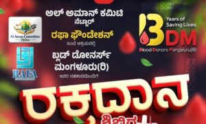 ಬ್ಲಡ್ ಡೋನರ್ಸ್ ಮಂಗಳೂರು ಇದರ 13ನೇ ವಾರ್ಷಿಕೋತ್ಸವದ ಪ್ರಯುಕ್ತ ಅಲ್ ಅಮಾನ್ ಕಮಿಟಿ ನೆಟ್ಟಾರು ಹಾಗೂ ರಫಾ ಫೌಂಡೇಷನ್ ಜಂಟಿ ಆಶ್ರಯದಲ್ಲಿ ಬ್ಲಡ್ ಡೋನರ್ಸ್ ಮಂಗಳೂರು(ರಿ.) ಇದರ ಸಹಕಾರದೊಂದಿಗೆ ರಕ್ತದಾನ ಶಿಬಿರವು ಏ.26ರಂದು ಬೆಳಿಗ್ಗೆ 9:00ರಿಂದ ಮಧ್ಯಾಹ್ನ 1:00ರ ತನಕ ಬೆಳ್ಳಾರೆ ಗ್ರಾಮದ ನೆಟ್ಟಾರಿನ ನೂರುಲ್ ಇಸ್ಲಾಂ ಮದರಸ ಇಲ್ಲಿ ನಡೆಯಲಿದೆ ಎಂದು ಶಿಬಿರದ ಆಯೋಜಕರು...