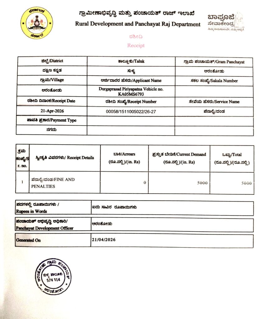 ಅರಂತೋಡು ಗ್ರಾಮ ಪಂಚಾಯತ್ ವ್ಯಾಪ್ತಿಯಲ್ಲಿ ಬರುವ ಕುಲ್ಚಾರು ಸೇತುವೆಯಿಂದ ನದಿಗೆ ಪ್ರಯಾಣಿಕರು ತ್ಯಾಜ ಎಸೆಯುತ್ತಿರುವುದನ್ನು ಸ್ಥಳೀಯ ಅಟೋರಿಕ್ಷಾ ಚಾಲಕರು ಹಾಗೂ ಸ್ಥಳೀಯ ನಿವಾಸಿಗಳು ಗಮನಿಸಿ, ಅವರನ್ನು ಪ್ರಶ್ನಿಸಿದರಲ್ಲದೆ, ಅರಂತೋಡು ಗ್ರಾ.ಪಂ.ಗೆ ವಿಷಯ ತಿಳಿಸಿದ್ದು, ತ್ಯಾಜ್ಯ ಎಸೆದ ವಾಹನ ಪ್ರಯಾಣಿಕರಿಗೆ ಗ್ರಾಮ ಪಂಚಾಯತ್ ವತಿಯಿಂದ ಪೊಲೀಸರ ಸಹಕಾರದಿಂದ ರೂ. ಐದು ಸಾವಿರ ದಂಡ ವಿಧಿಸಿದ ಘಟನೆ ಎ.21ರಂದು ವರದಿಯಾಗಿದೆ.