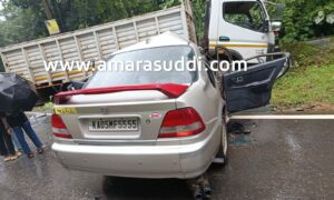 ಮೊಗರ್ಪಣೆ ಮಸೀದಿ ಎದುರು ಕಾರು ಹಾಗೂ ಲಾರಿ ಮಧ್ಯೆ ಇದೀಗ ಅಪಘಾತ ನಡೆದಿದೆ. ಕೆಲ ಹೊತ್ತು ರಸ್ತೆ ಬ್ಲಾಕ್ ಆಗಿದ್ದು, ಪೋಲೀಸರು ಸ್ಥಳಕ್ಕೆ ಆಗಮಿಸಿ ತೆರವುಗೊಳಿಸಿದರು. ಪ್ರಯಾಣಿಕರು ಅಪಾಯದಿಂದ ಪಾರಾಗಿದ್ದು, ಕಾರಿನ ಮುಂಭಾಗ ಜಖಂಗೊಂಡಿದೆ.