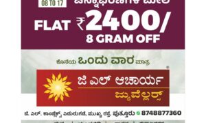 ಪ್ರತಿಷ್ಠಿತ ಚಿನ್ನಾಭರಣಗಳ ಮಳಿಗೆ ಜಿ.ಎಲ್ ಆಚಾರ್ಯ ಜ್ಯುವೆಲ್ಲರ್ಸ್ ನಲ್ಲಿ ಗಣರಾಜ್ಯೋತ್ಸವ ಹಬ್ಬದ ಪ್ರಯುಕ್ತ ಜನವರಿ 22ರಿಂದ 26ರವರೆಗೆ ರಿಪಬ್ಲಿಕ್ ಸೇಲ್ ವಿಶೇಷ ರಿಯಾಯಿತಿ ಕೊಡುಗೆಗಳನ್ನು ಪ್ರಕಟಿಸಲಾಗಿದೆ. ಚಿನ್ನ ಹಾಗೂ ವಜ್ರಾಭರಣಗಳ ವಿಶೇಷ ಸಂಗ್ರಹವೇ ಗ್ರಾಹಕರಿಗೆ ಹಬ್ಬದ ವಾತಾವರಣ ಸೃಷ್ಟಿಸಿದೆ. 24ಕ್ಯಾರೆಟ್ ಚಿನ್ನದ ದರ 15,000 ದಾಟಿದೆ. ಈ ಫೆಸ್ಟಿವ್ ಶಾಪಿಂಗ್ ಸೀಸನ್ನಲ್ಲಿ ಚಿನ್ನದ ದರ ಬೆಲೆ...