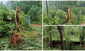 ಫೆ.25 ರಂದು ಸುರಿದ ಗಾಳಿ ಮಳೆಗೆ ಆರಂತೋಡು ಕೃಷ್ಣಪ್ಪ ಗೌಡ ಕಿರ್ಲಾಯ ಅವರ ಮನೆ ಮೇಲೆ ತೆಂಗಿನ ಮರ ಬಿದ್ದು, ಹಂಚುಗಳು ಪುಡಿ ಪುಡಿಯಾಗಿದ್ದು, ಸಂಪೂರ್ಣ ಮನೆಗೆ ಕೂಡ ಹಾನಿಯಾಗಿ ನಷ್ಟ ಸಂಭವಿಸಿದೆ.