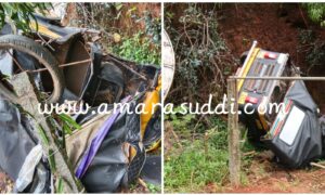 ಕೊಡಗು ಸಂಪಾಜೆ ಪೆಟ್ರೋಲ್ ಬಂಕಿನ ಸಮೀಪದಲ್ಲಿ ರಿಕ್ಷಾದ ಹಿಂದಕ್ಕೆ ಕಾರು ಗುದ್ದಿದ ಪರಿಣಾಮ ರಿಕ್ಷಾ ಪಲ್ಟಿಯಾಗಿದ್ದು, ಇದೇ ಸಂದರ್ಭದಲ್ಲಿ ಎದುರಿನಿಂದ ಬಂದ ಟಿಪ್ಪರ್ ಲಾರಿ ಹತ್ತಿ ರಿಕ್ಷಾ ಸವಾರ ಮೃತಪಟ್ಟ ಘಟನೆ ಇಂದು ನಡೆದಿದೆ. ರಿಕ್ಷಾದಲ್ಲಿದ್ದ ಪ್ರಯಾಣಿಕ ಮಹಿಳೆ ಗಾಯಗೊಂಡಿದ್ದು, ಸುಳ್ಯ ಆಸ್ಪತ್ರೆಗೆ ಸಾಗಿಸಲಾಗಿದೆ. ಕಾರು ನಿಲ್ಲಿಸದೇ ಪರಾರಿಯಾಗಿದೆ.ಸ್ಥಳಕ್ಕೆ ಪೊಲೀಸರು ಭೇಟಿ ನೀಡಿದ್ದಾರೆ. ರಿಕ್ಷಾ ಚಾಲಕ...